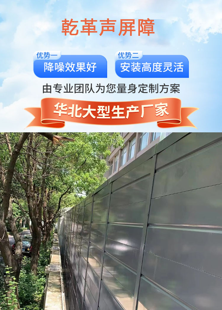 小區聲屏障根據所處地段、安裝地段等的實際情況,會設計成不同結構的,全金屬的、全透明的、金屬透明組合的、大弧形的都可采用,也可以根據顏色、沖孔外形的制作成美觀大氣的隔音屏障。